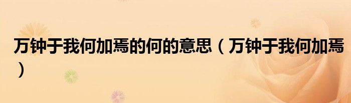 大家好,小晋来为大家解答以下问题,关于万钟于我何加焉的何的意思,万钟于我何加焉很多人还不知道,今天让我们一起来看看吧!