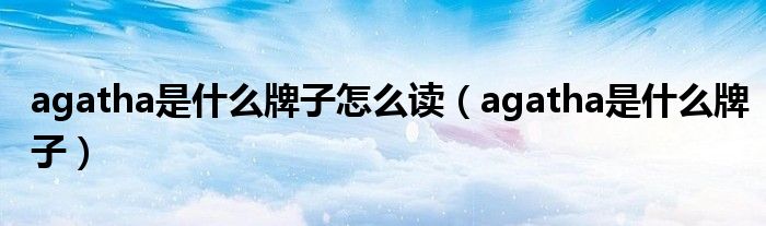 关于agatha是什么牌子怎么读,agatha是什么牌子这个很多人还不知道,今天菲菲来为大家解答以上的问题,现在让我们一起来看看吧!