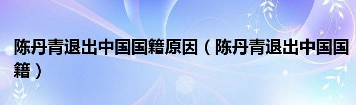 关于陈丹青退出中国国籍原因,陈丹青退出中国国籍这个很多人还不知道,今天菲菲来为大家解答以上的问题,现在让我们一起来看看吧!