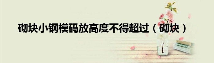 关于砌块小钢模码放高度不得超过,砌块这个很多人还不知道,今天菲菲来为大家解答以上的问题,现在让我们一起来看看吧!