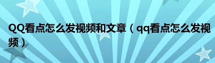 大家好,小晋来为大家解答以下问题,关于QQ看点怎么发视频和文章,qq看点怎么发视频很多人还不知道,今天让我们一起来看看吧!