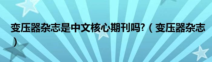 关于变压器杂志是中文核心期刊吗?,变压器杂志这个很多人还不知道,今天菲菲来为大家解答以上的问题,现在让我们一起来看看吧!