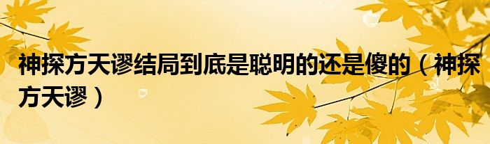 关于神探方天谬结局到底是聪明的还是傻的,神探方天谬这个很多人还不知道,今天菲菲来为大家解答以上的问题,现在让我们一起来看看吧!