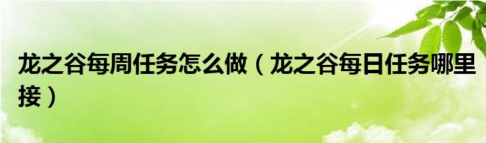 关于龙之谷每周任务怎么做,龙之谷每日任务哪里接这个很多人还不知道,今天菲菲来为大家解答以上的问题,现在让我们一起来看看吧!