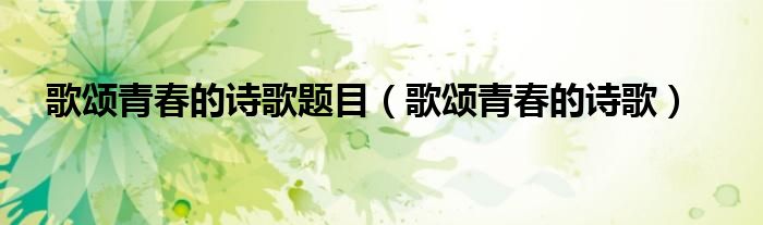 关于歌颂青春的诗歌题目,歌颂青春的诗歌这个很多人还不知道,今天菲菲来为大家解答以上的问题,现在让我们一起来看看吧!