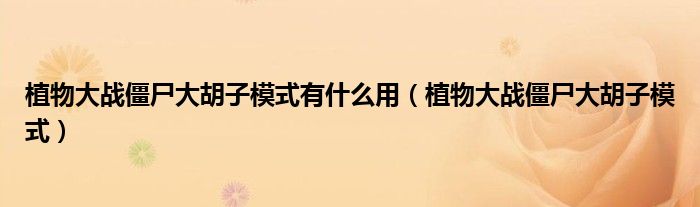 关于植物大战僵尸大胡子模式有什么用,植物大战僵尸大胡子模式这个很多人还不知道,今天菲菲来为大家解答以上的问题,现在让我们一起来看看吧!