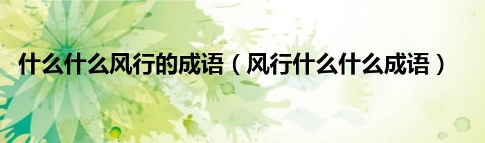 关于什么什么风行的成语,风行什么什么成语这个很多人还不知道,今天菲菲来为大家解答以上的问题,现在让我们一起来看看吧!