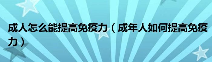关于成人怎么能提高免疫力,成年人如何提高免疫力这个很多人还不知道,今天菲菲来为大家解答以上的问题,现在让我们一起来看看吧!