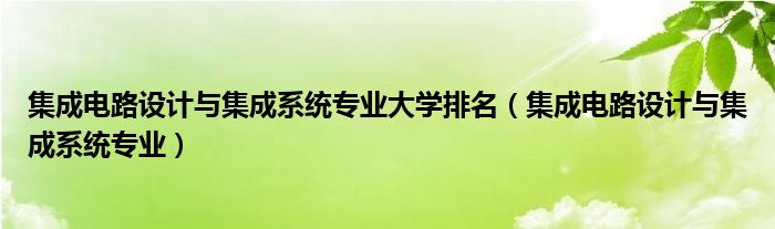 大家好,小晋来为大家解答以下问题,关于集成电路设计与集成系统专业大学排名,集成电路设计与集成系统专业很多人还不知道,今天让我们一起来看看吧!