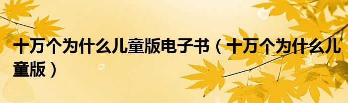 大家好,小晋来为大家解答以下问题,关于十万个为什么儿童版电子书,十万个为什么儿童版很多人还不知道,今天让我们一起来看看吧!