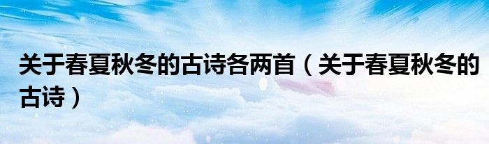 关于关于春夏秋冬的古诗各两首,关于春夏秋冬的古诗这个很多人还不知道,今天菲菲来为大家解答以上的问题,现在让我们一起来看看吧!