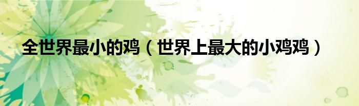 关于全世界最小的鸡,世界上最大的小鸡鸡这个很多人还不知道,今天菲菲来为大家解答以上的问题,现在让我们一起来看看吧!