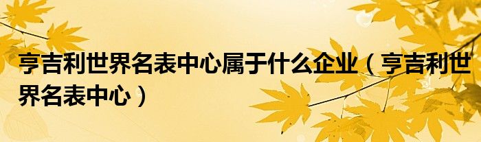 关于亨吉利世界名表中心属于什么企业,亨吉利世界名表中心这个很多人还不知道,今天菲菲来为大家解答以上的问题,现在让我们一起来看看吧!
