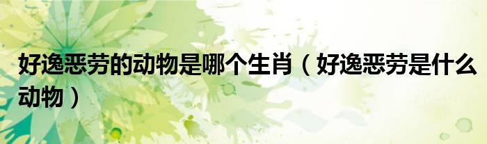 关于好逸恶劳的动物是哪个生肖,好逸恶劳是什么动物这个很多人还不知道,今天菲菲来为大家解答以上的问题,现在让我们一起来看看吧!