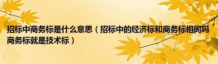关于招标中商务标是什么意思,招标中的经济标和商务标相同吗 商务标就是技术标这个很多人还不知道,今天菲菲来为大家解答以上的问题,现在让我们一起来看看吧!