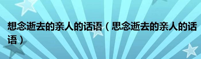 大家好,小晋来为大家解答以下问题,关于想念逝去的亲人的话语,思念逝去的亲人的话语很多人还不知道,今天让我们一起来看看吧!