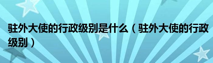 关于驻外大使的行政级别是什么,驻外大使的行政级别这个很多人还不知道,今天菲菲来为大家解答以上的问题,现在让我们一起来看看吧!