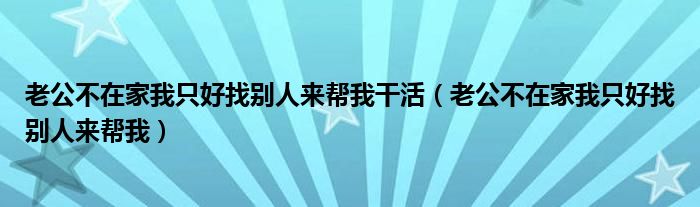 关于老公不在家我只好找别人来帮我干活,老公不在家我只好找别人来帮我这个很多人还不知道,今天菲菲来为大家解答以上的问题,现在让我们一起来看看吧!