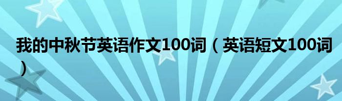 关于我的中秋节英语作文100词,英语短文100词这个很多人还不知道,今天菲菲来为大家解答以上的问题,现在让我们一起来看看吧!