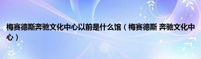 关于梅赛德斯奔驰文化中心以前是什么馆,梅赛德斯 奔驰文化中心这个很多人还不知道,今天菲菲来为大家解答以上的问题,现在让我们一起来看看吧!