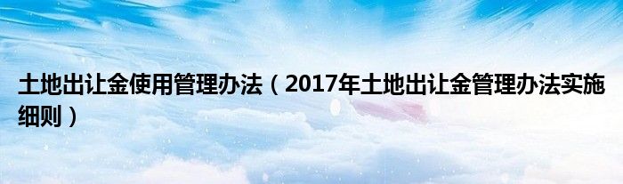 土地出让金使用管理办法(2017年土地出让金管理办法实施细则)