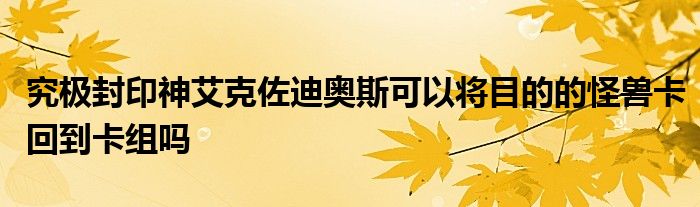 关于究极封印神艾克佐迪奥斯可以将目的的怪兽卡回到卡组吗这个很多人还不知道,今天菲菲来为大家解答以上的问题,现在让我们一起来看看吧!