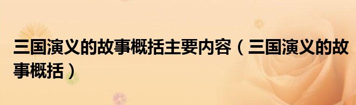 关于三国演义的故事概括主要内容,三国演义的故事概括这个很多人还不知道,今天菲菲来为大家解答以上的问题,现在让我们一起来看看吧!