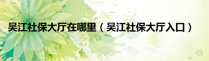 关于吴江社保大厅在哪里,吴江社保大厅入口这个很多人还不知道,今天菲菲来为大家解答以上的问题,现在让我们一起来看看吧!