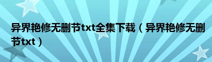 关于异界艳修无删节txt全集下载,异界艳修无删节txt这个很多人还不知道,今天菲菲来为大家解答以上的问题,现在让我们一起来看看吧!