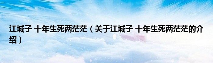 大家好,今天小乐来为大家解答以上的问题。江城子 十年生死两茫茫,关于江城子 十年生死两茫茫的介绍很多人还不知道,现在让我们一起来看看吧!