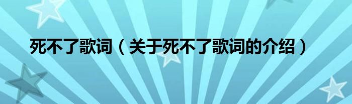 大家好,今天小乐来为大家解答以上的问题。死不了歌词,关于死不了歌词的介绍很多人还不知道,现在让我们一起来看看吧!