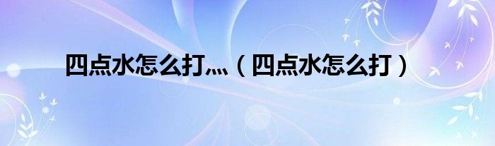 大家好,小晋来为大家解答以下问题,关于四点水怎么打灬,四点水怎么打很多人还不知道,今天让我们一起来看看吧!