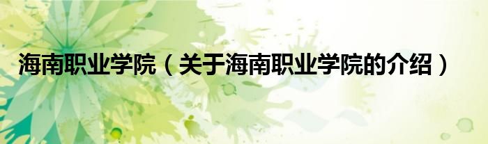 1、海南职业技术学院(HainanCollegeofVocationandTechnique),简称“海职院”,坐落于海南省海口市,是教育部、海南省共建的重点高职院校、国家现代学徒制试点单位、国家示范性高等职业院校。