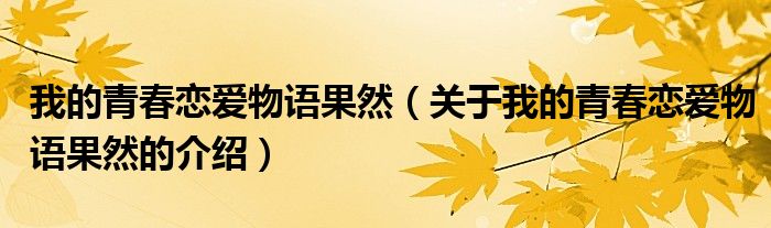 大家好,今天小乐来为大家解答以上的问题。我的青春恋爱物语果然,关于我的青春恋爱物语果然的介绍很多人还不知道,现在让我们一起来看看吧!