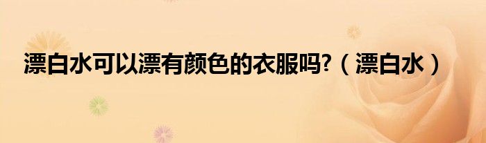 关于漂白水可以漂有颜色的衣服吗?,漂白水这个很多人还不知道,今天菲菲来为大家解答以上的问题,现在让我们一起来看看吧!