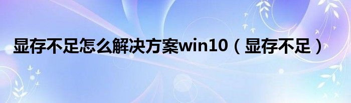 关于显存不足怎么解决方案win10,显存不足这个很多人还不知道,今天菲菲来为大家解答以上的问题,现在让我们一起来看看吧!
