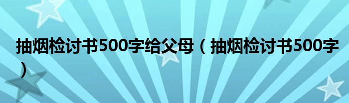 关于抽烟检讨书500字给父母,抽烟检讨书500字这个很多人还不知道,今天菲菲来为大家解答以上的问题,现在让我们一起来看看吧!