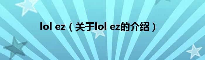 大家好,今天小乐来为大家解答以上的问题。lol ez,关于lol ez的介绍很多人还不知道,现在让我们一起来看看吧!