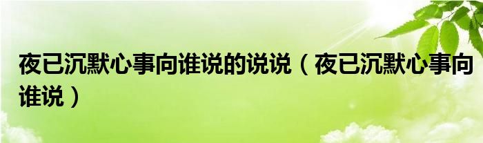关于夜已沉默心事向谁说的说说,夜已沉默心事向谁说这个很多人还不知道,今天菲菲来为大家解答以上的问题,现在让我们一起来看看吧!