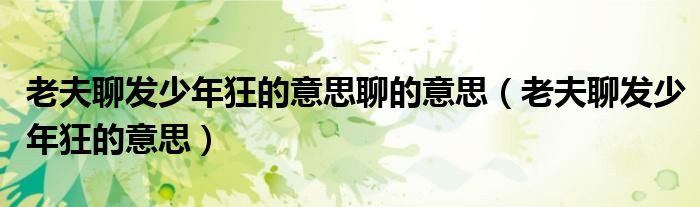 大家好,小晋来为大家解答以下问题,关于老夫聊发少年狂的意思聊的意思,老夫聊发少年狂的意思很多人还不知道,今天让我们一起来看看吧!