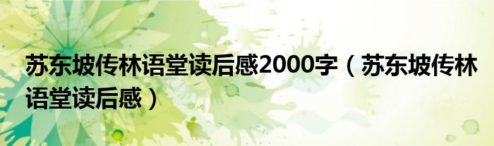 苏东坡传林语堂读后感2000字(苏东坡传林语堂读后感)