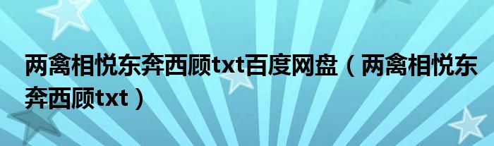 两禽相悦东奔西顾txt百度网盘(两禽相悦东奔西顾txt)