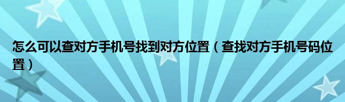 大家好,小晋来为大家解答以下问题,关于怎么可以查对方手机号找到对方位置,查找对方手机号码位置很多人还不知道,今天让我们一起来看看吧!