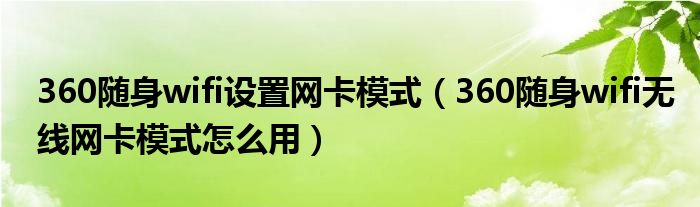 360随身wifi设置网卡模式(360随身wifi无线网卡模式怎么用)