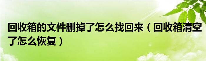 关于回收箱的文件删掉了怎么找回来,回收箱清空了怎么恢复这个很多人还不知道,今天菲菲来为大家解答以上的问题,现在让我们一起来看看吧!