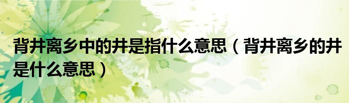 背井离乡中的井是指什么意思(背井离乡的井是什么意思)