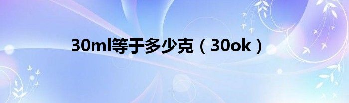 关于30ml等于多少克,30ok这个很多人还不知道,今天菲菲来为大家解答以上的问题,现在让我们一起来看看吧!