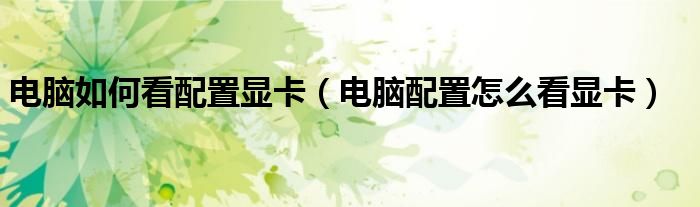 电脑如何看配置显卡(电脑配置怎么看显卡)