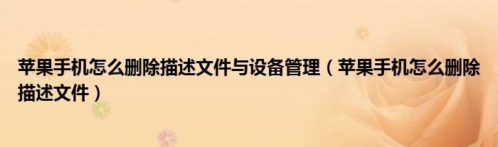 大家好,小晋来为大家解答以下问题,关于苹果手机怎么删除描述文件与设备管理,苹果手机怎么删除描述文件很多人还不知道,今天让我们一起来看看吧!