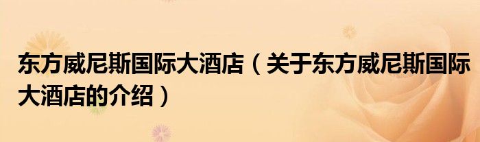 大家好,今天小乐来为大家解答以上的问题。东方威尼斯国际大酒店,关于东方威尼斯国际大酒店的介绍很多人还不知道,现在让我们一起来看看吧!